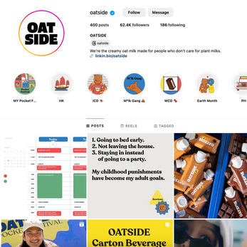 I developed the content strategy and tone of voice for Oatside's social channels. Over the course of the 7 months I was with the company, I grew our following organically to over 20K followers.